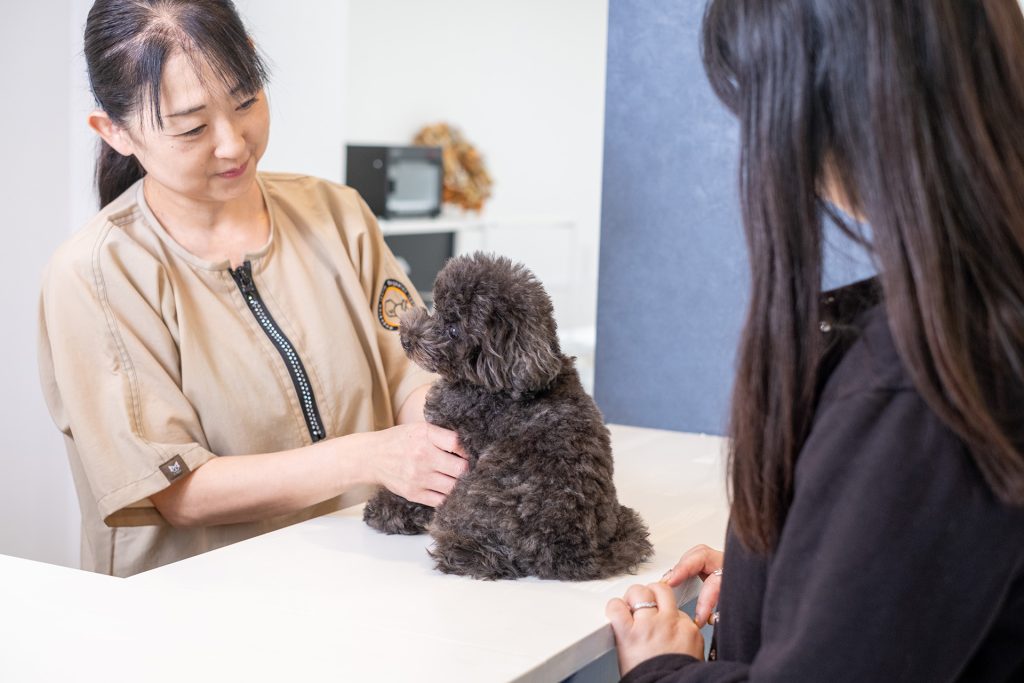怪我や病気の早期発見にもつながるよう、トリミング前に体重測定を行います。 愛犬の健康状態のチェックに繋がります。